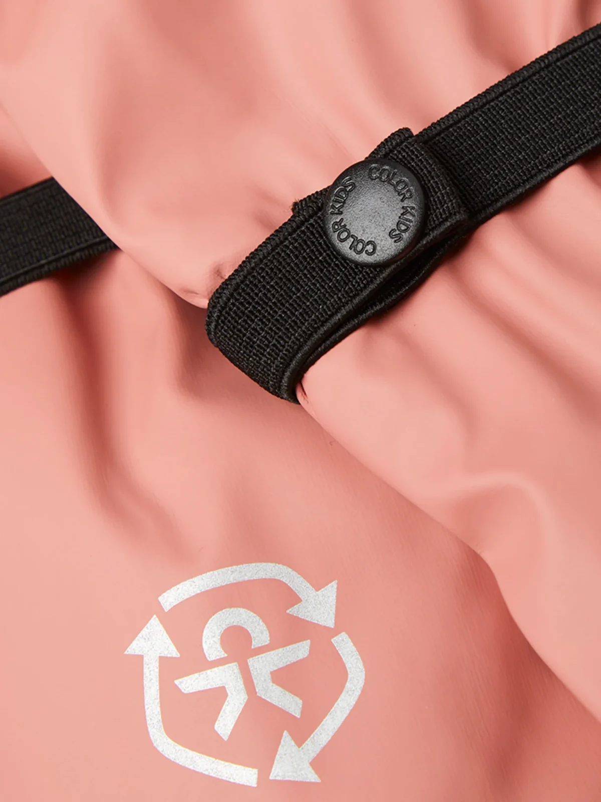 Ühevärvilised kvaliteetsest PU-materjalist vihmakindad. Randme ümber on reguleeritav rihm, et kindad sobiksid lapsele hästi. Kinnastel on 10 000 mm veesamba näitaja ning teibitud õmblused, mis muudavad need täielikult tuule- ja veekindlaks. Käeselja osal on selge helkurlogo.