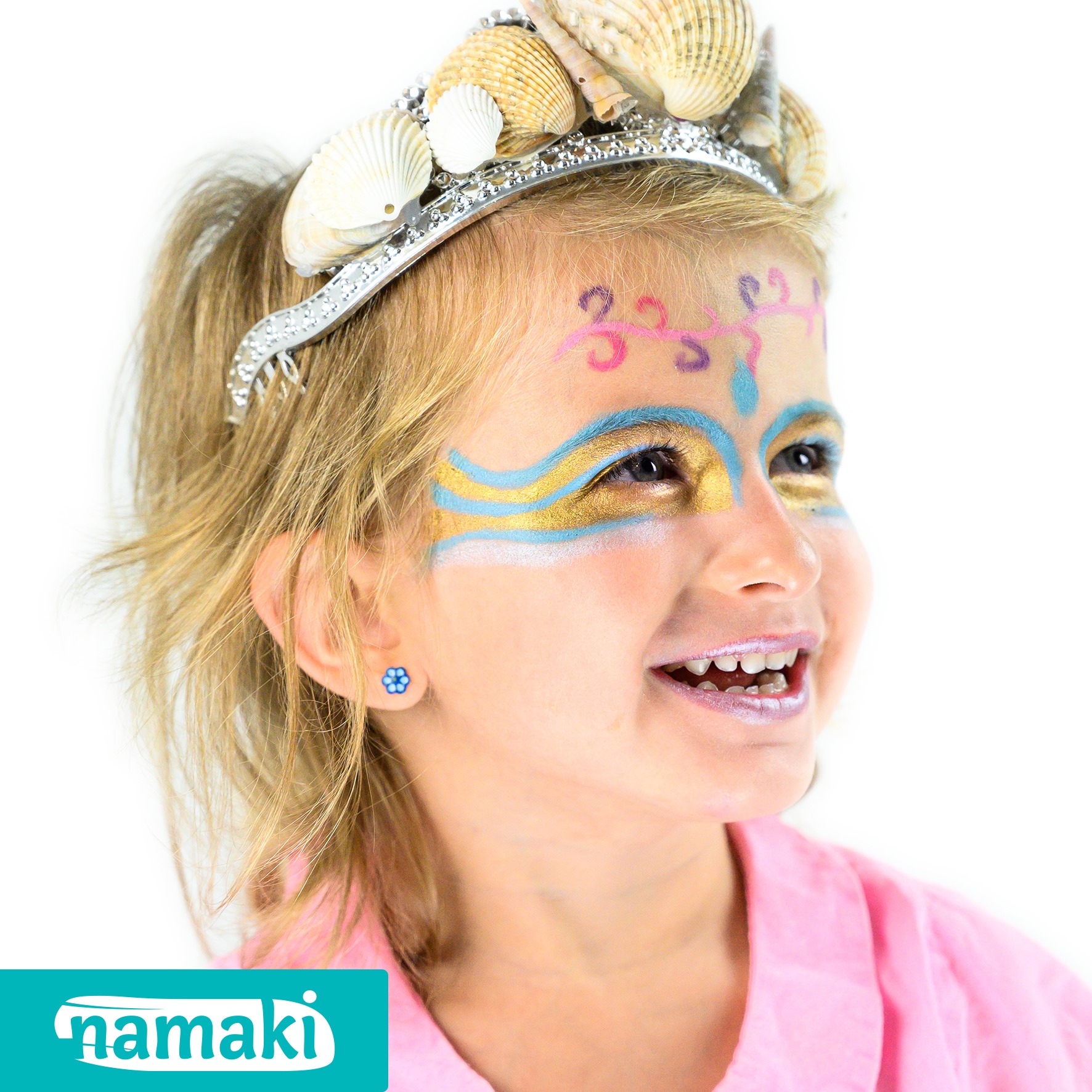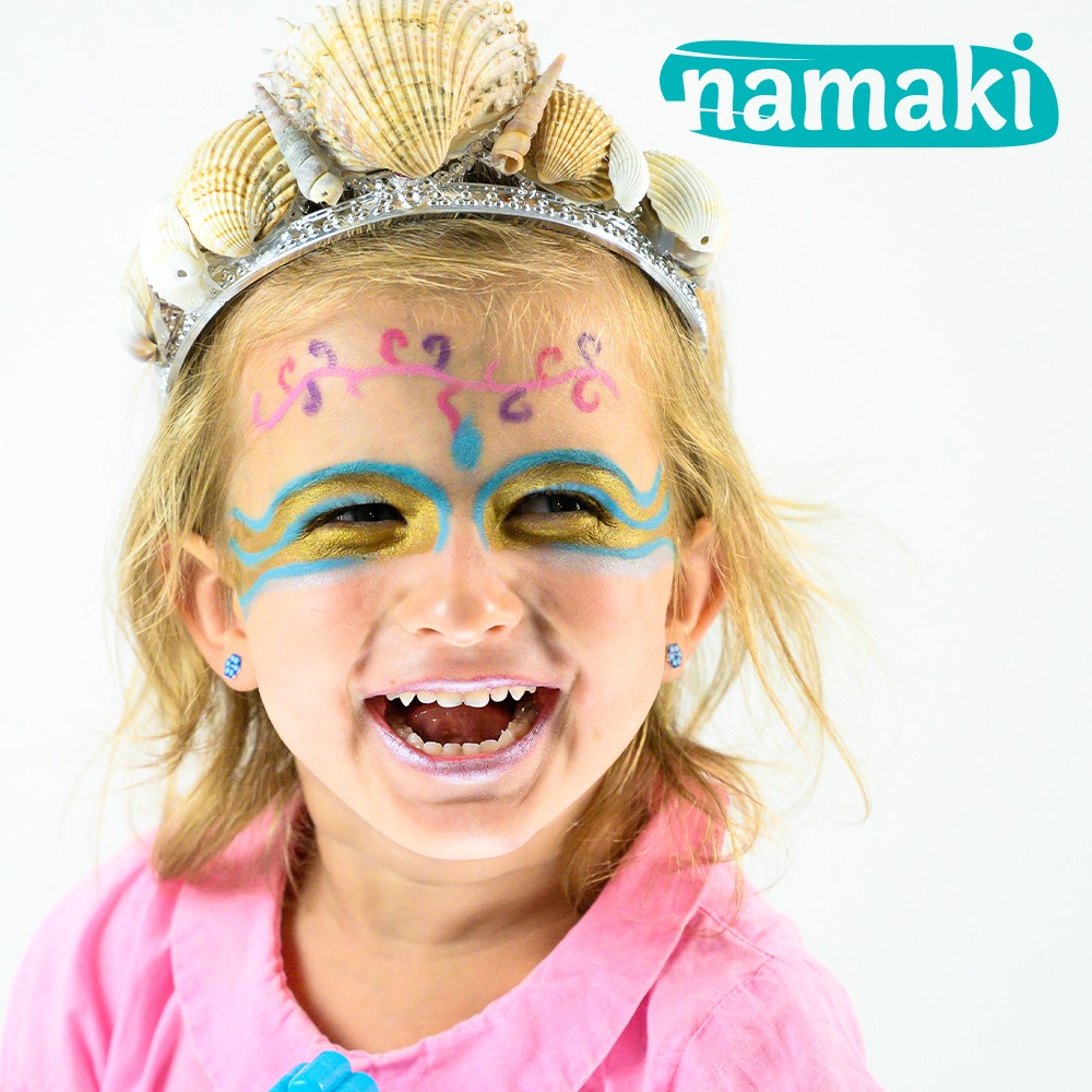 Namaki näovärvi pliiatsid on looduslikest koostisainetest ja on lapsele ohutud ja tulevad vee ja seebiga pestes maha.